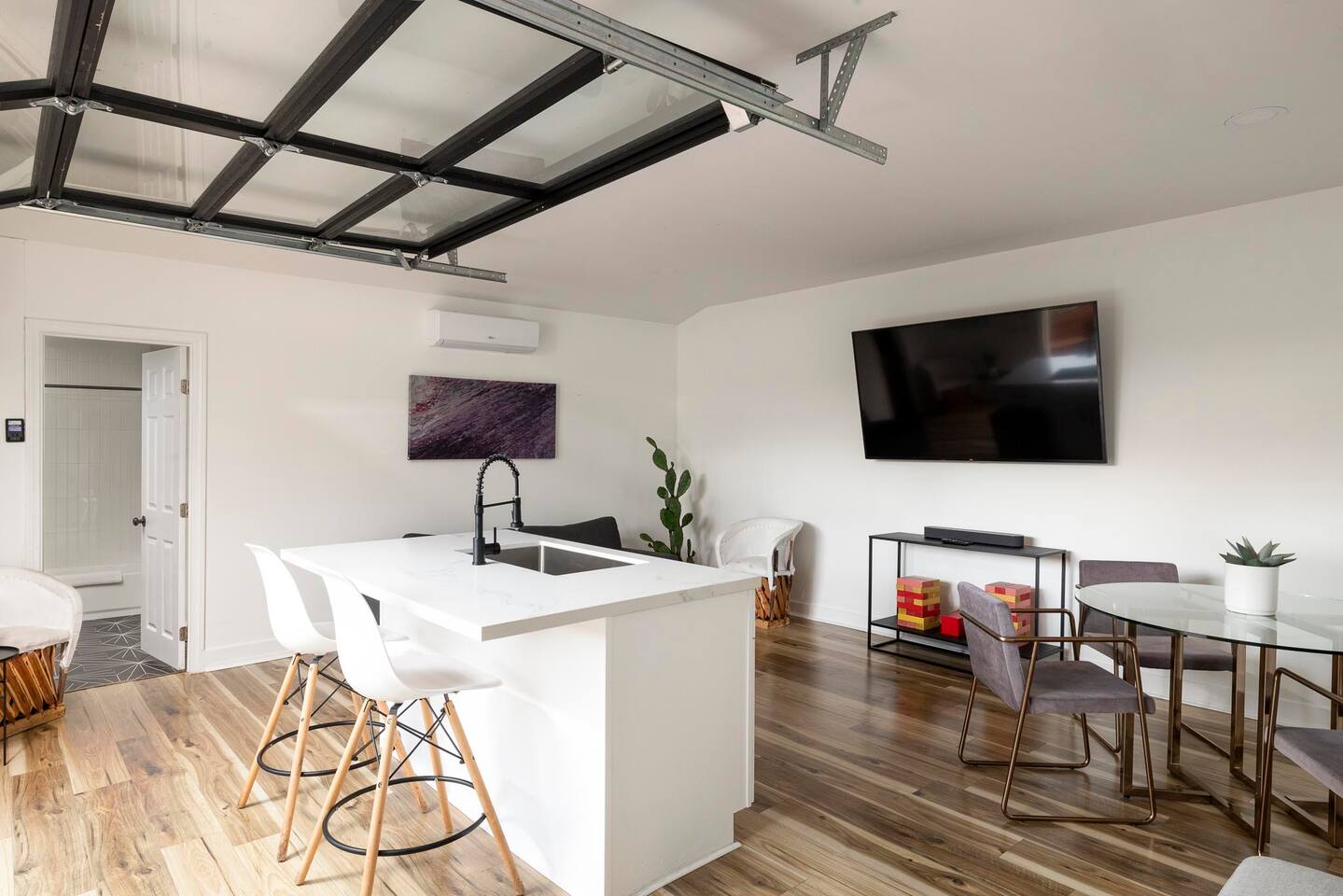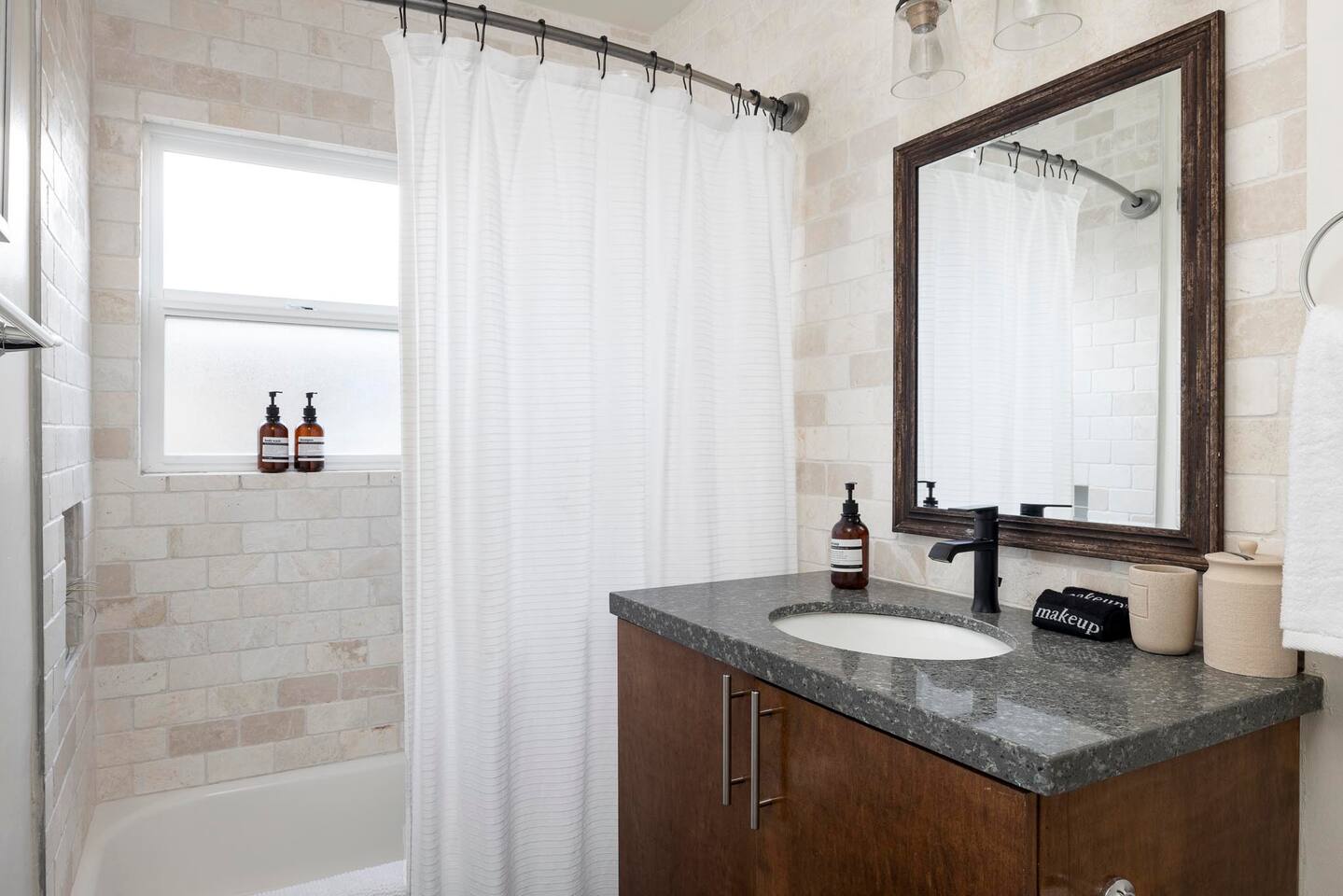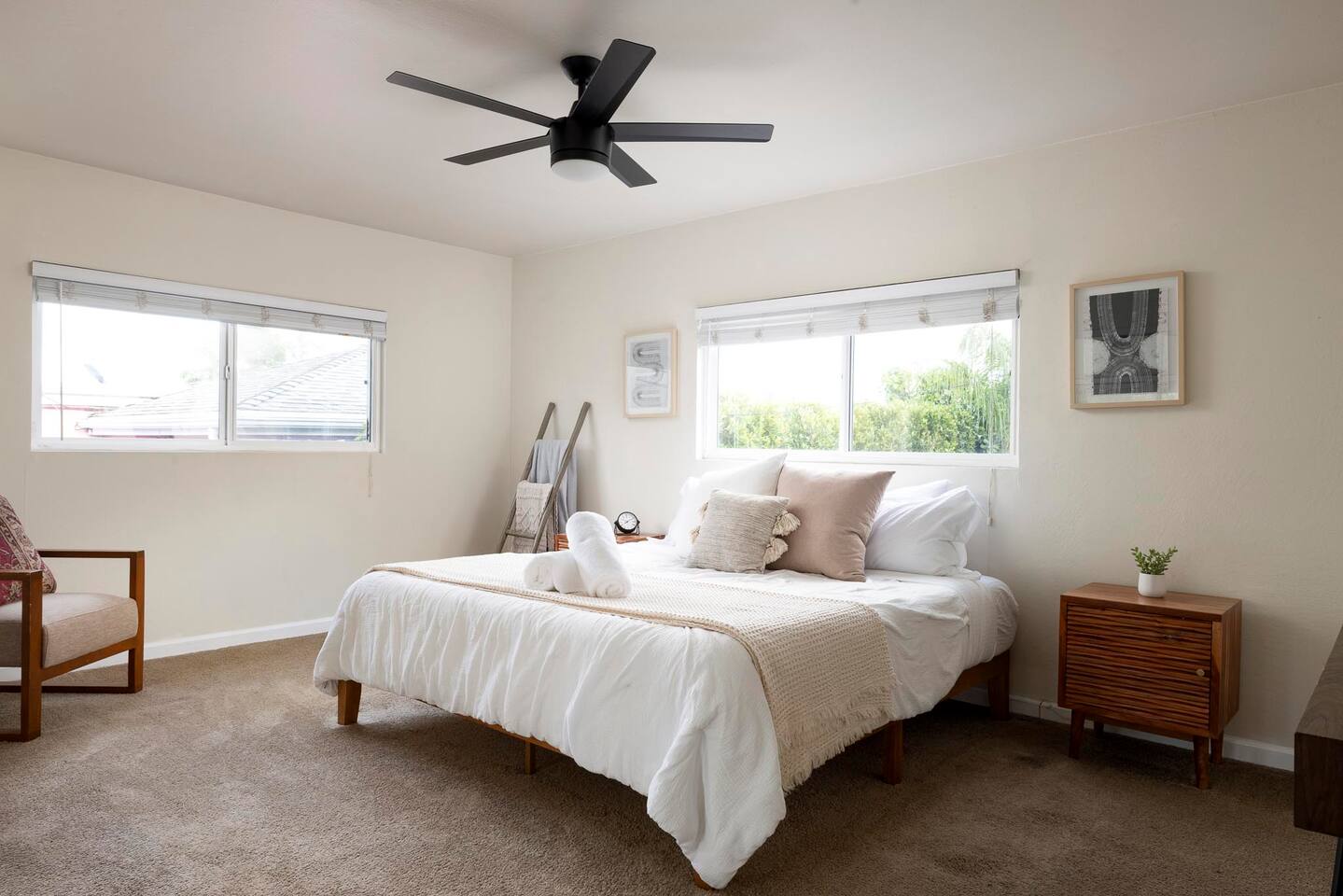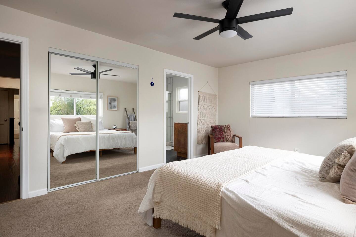 🏡 The Home (at a glance) - 3 bedrooms + detached studio / pool house - 3 full bathrooms - Chef’s kitchen + large island for group meals - Single-level layout - 4-car parking Built for groups who want space, privacy, and an experience—not just a place to sleep. 🛏️ Sleeps 13 Designed for group comfort with hotel-quality mattresses and luxury linens throughout the main house and studio. Sleeping setup includes: - 1 King - 1 Queen - 2 Twins - 2 Queen sofa beds - 2 Twin sofa beds - 1x Rollaway/foldable bed We also provide 2 comfy auto-inflating air mattresses (to enable different sleeping arrangements ) Baby amenities available upon request in advance (changing pad + high chair). 🌴 Private Backyard Oasis The backyard is the highlight and ideal for group hangs: - Private swimming pool (optional heat available) - Large hot tub - Outdoor movie setup with projector (watch from the hot tub) - Wood fire pit - Covered outdoor dining with string lights - Grill + pool house sink - Sun loungers & lounge seating - The detached studio opens directly to the pool and includes a full bathroom and countertop + large, making long outdoor days easy and seamless. Perfect for drinks, sharing food, listening to music, and more with a group. 🍽️ Kitchen & Dining Fully equipped for group cooking and entertaining: - Gas stove & oven - Large island for serving & events - Coffee maker + coffee - Blender, toaster, cookware, bakeware - Full place settings, drinkware & wine glasses 🛋️ Living Area - Indoor fireplace - Large smart TV with streaming apps - Comfortable seating + sofa bed - Bright, open layout with curated decor Perfect for movie nights, games, or relaxing after a full day out. 💻 WiFi & Work - 500 Mbps fiber WiFi package from AT&T Ideal for streaming, remote work, and gaming Dedicated workspace with external monitor available 📍 Central San Diego Location Minutes to: - Downtown & Gaslamp - Balboa Park & SD Zoo - Airport - SeaWorld - Beaches, dining, nightlife Enjoy privacy without sacrificing convenience. 🐾 Pets Pets are welcome with prior approval and an additional fee. Please include pets in your booking request.