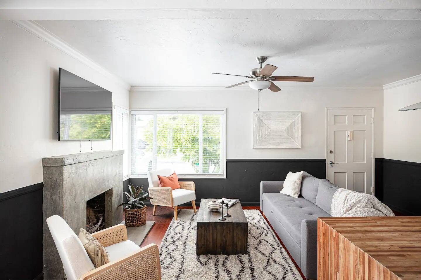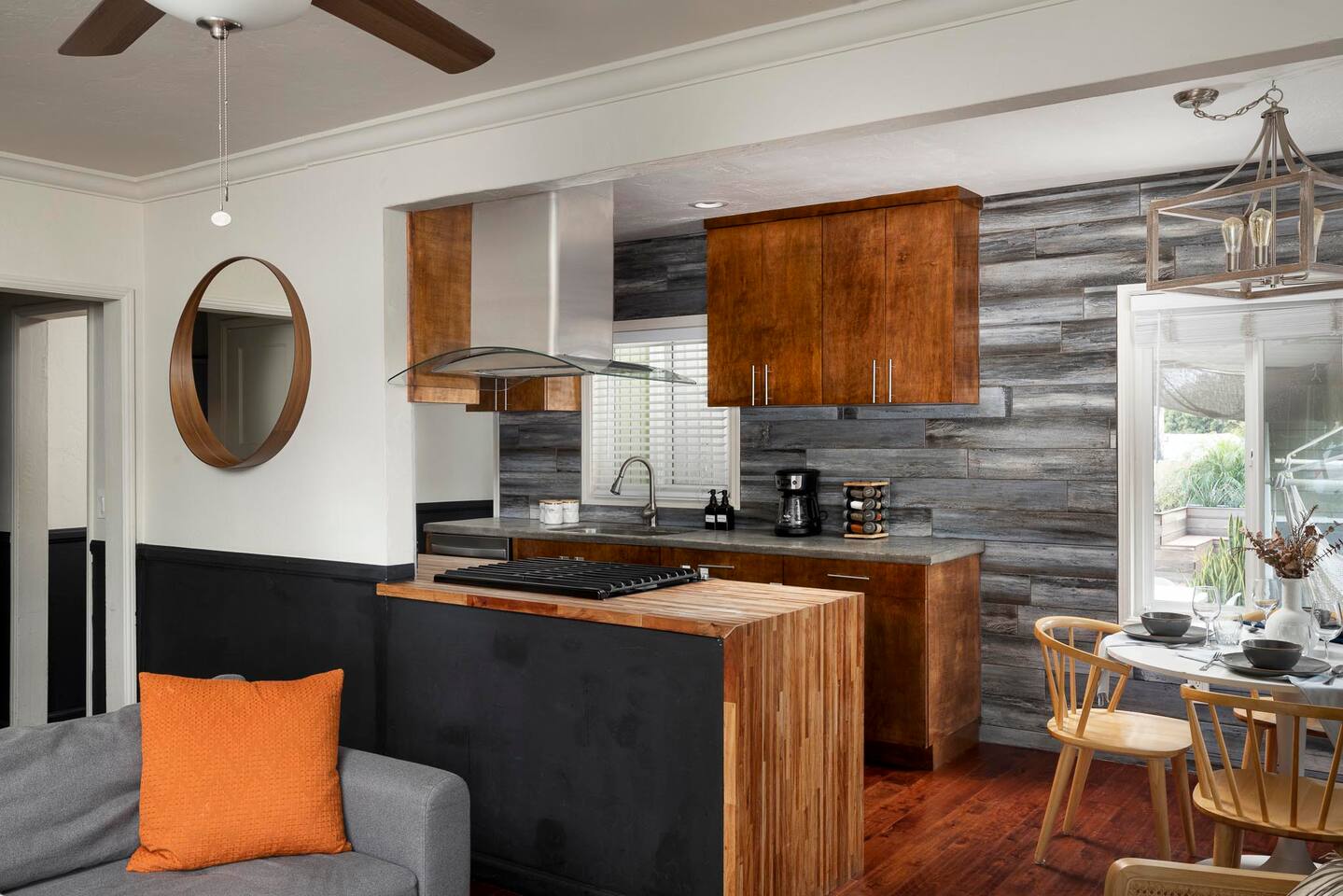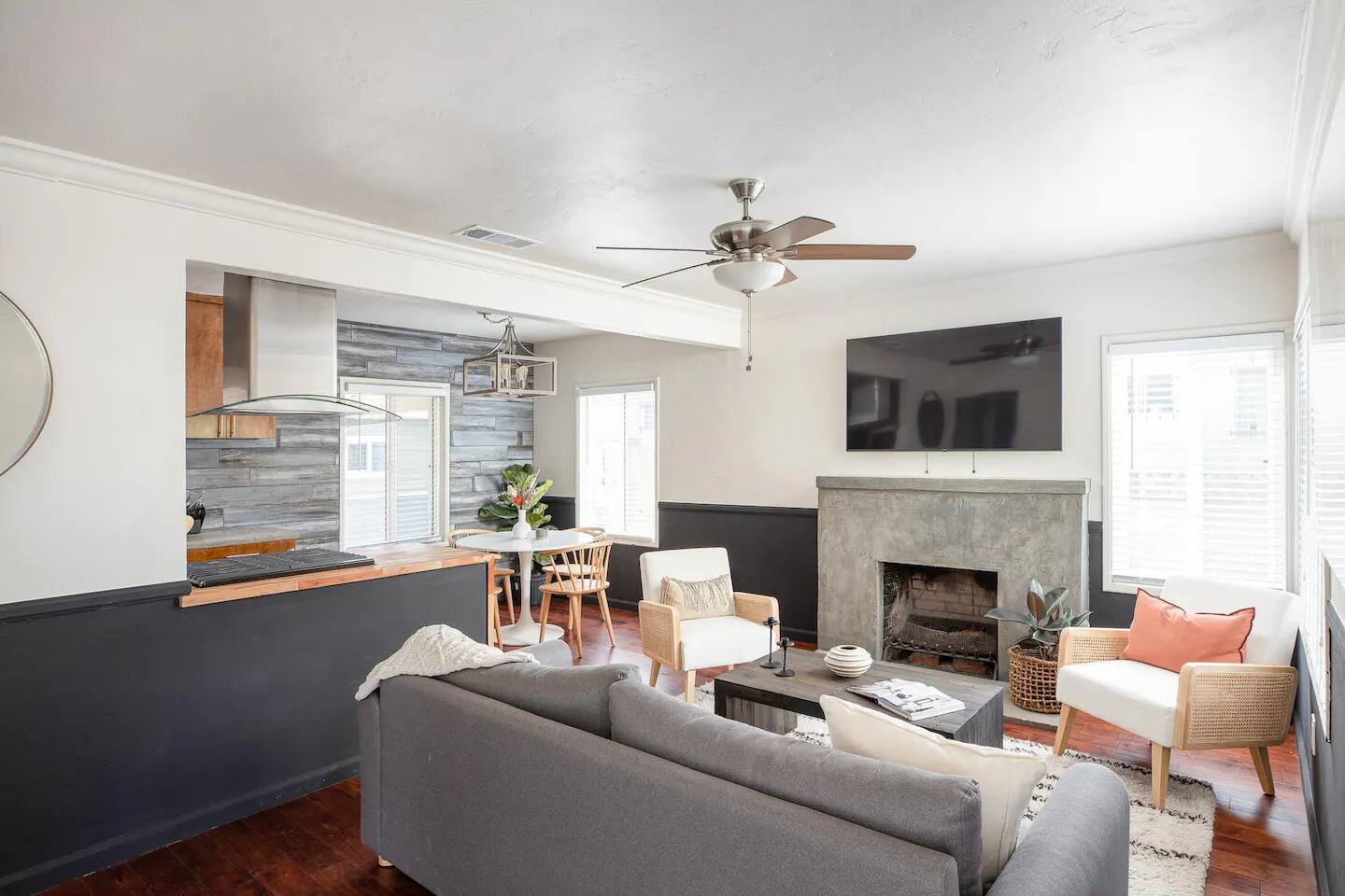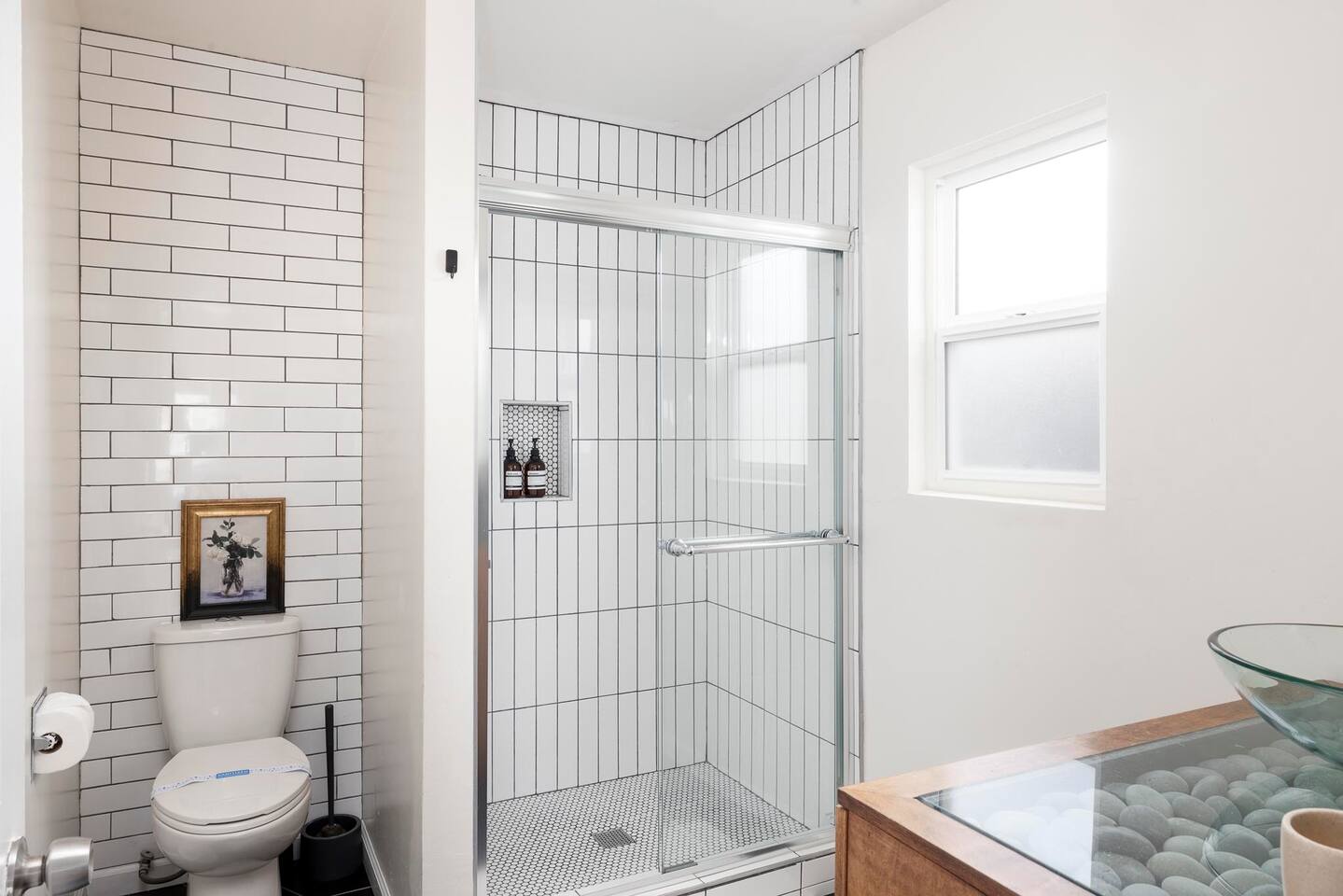 🏡 The Home (at a glance) - 3 bedrooms + detached studio / pool house - 3 full bathrooms - Chef’s kitchen + large island for group meals - Single-level layout - 4-car parking Built for groups who want space, privacy, and an experience—not just a place to sleep. 🛏️ Sleeps 13 Designed for group comfort with hotel-quality mattresses and luxury linens throughout the main house and studio. Sleeping setup includes: - 1 King - 1 Queen - 2 Twins - 2 Queen sofa beds - 2 Twin sofa beds - 1x Rollaway/foldable bed We also provide 2 comfy auto-inflating air mattresses (to enable different sleeping arrangements ) Baby amenities available upon request in advance (changing pad + high chair). 🌴 Private Backyard Oasis The backyard is the highlight and ideal for group hangs: - Private swimming pool (optional heat available) - Large hot tub - Outdoor movie setup with projector (watch from the hot tub) - Wood fire pit - Covered outdoor dining with string lights - Grill + pool house sink - Sun loungers & lounge seating - The detached studio opens directly to the pool and includes a full bathroom and countertop + large, making long outdoor days easy and seamless. Perfect for drinks, sharing food, listening to music, and more with a group. 🍽️ Kitchen & Dining Fully equipped for group cooking and entertaining: - Gas stove & oven - Large island for serving & events - Coffee maker + coffee - Blender, toaster, cookware, bakeware - Full place settings, drinkware & wine glasses 🛋️ Living Area - Indoor fireplace - Large smart TV with streaming apps - Comfortable seating + sofa bed - Bright, open layout with curated decor Perfect for movie nights, games, or relaxing after a full day out. 💻 WiFi & Work - 500 Mbps fiber WiFi package from AT&T Ideal for streaming, remote work, and gaming Dedicated workspace with external monitor available 📍 Central San Diego Location Minutes to: - Downtown & Gaslamp - Balboa Park & SD Zoo - Airport - SeaWorld - Beaches, dining, nightlife Enjoy privacy without sacrificing convenience. 🐾 Pets Pets are welcome with prior approval and an additional fee. Please include pets in your booking request.